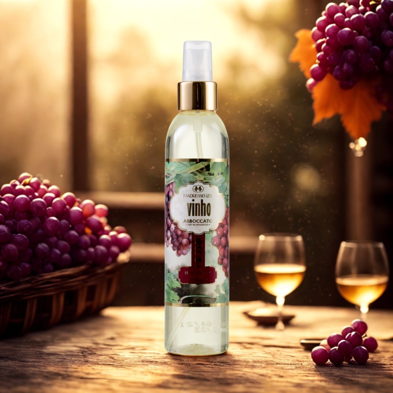 O Home Spray Vinho 200 ml é apresentado em um lindo Spray plástico com válvula dourada, decorado com uvas e folhas da planta, o que o torna um agrado ao olfato e aos olhos. É de fácil uso por meio do seu spray, perfeito para perfumar de forma rápida e prática qualquer ambiente, combatendo os aromas desagradáveis de forma eficaz, com uma combinação de notas doces, simples e elegantes. Com um aroma doce e requintado, ele torna o ambiente um lugar agradável e aconchegante, ideal para relaxar.
