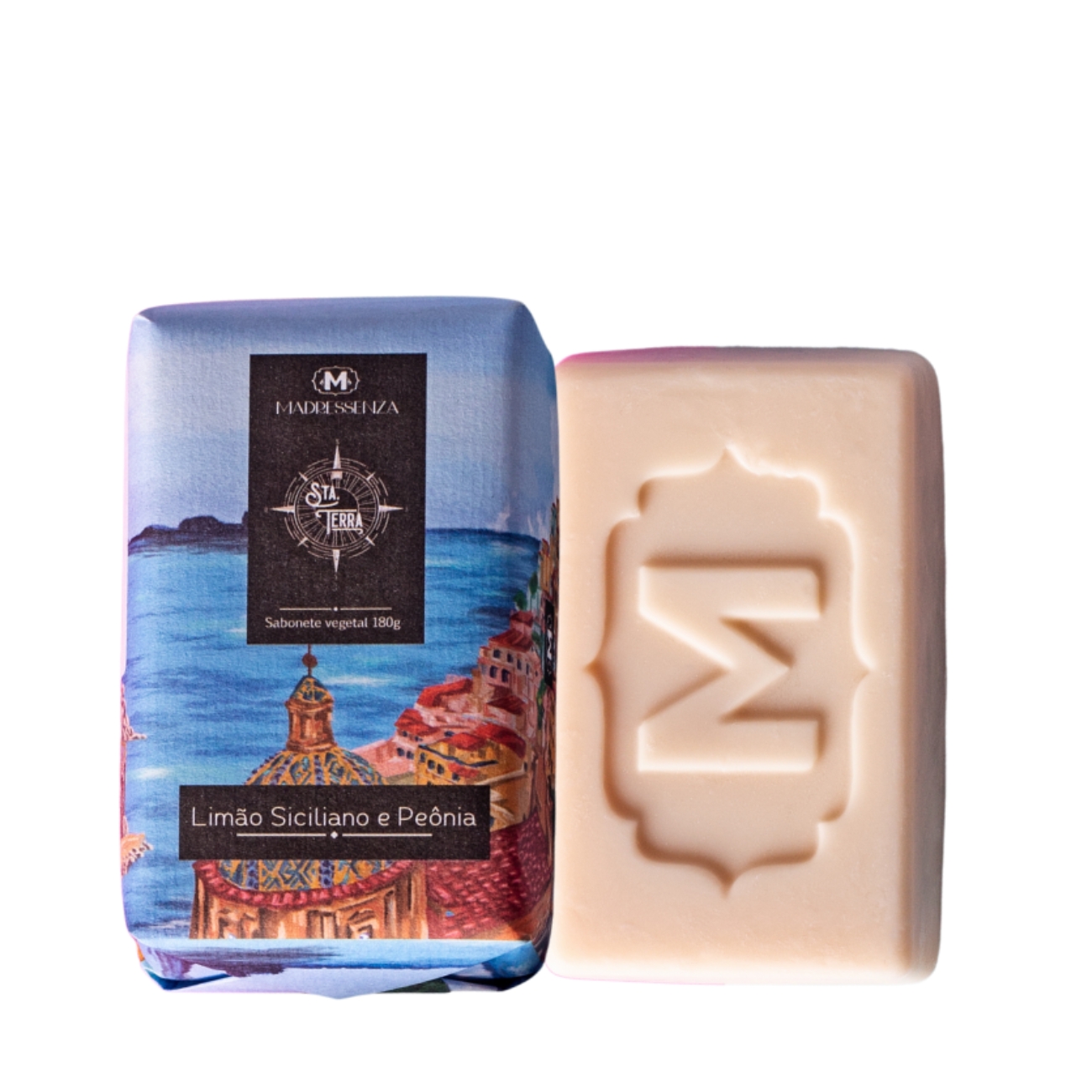 Com um aroma cítrico refrescante direto das encostas íngremes da Costa Amalfitanas, esse perfume exótico e suave irá envolver sua vida em pureza e emoção. Com um perfume discreto estimula os sentidos e proporciona vitalidade ao corpo e mente. Com saída de laranja, limão siciliano, pêra e bergamota, que encaminha para o corpo de peônia, jasmim e freesia, com um fundo acorde chocolate, cedro e musk, o Sabonete Vegetal Sta Terra Limão Siciliano e Peônia da Madressenza é ideal para um banho relaxante e tranquilizante, proporcionando bem-estar.