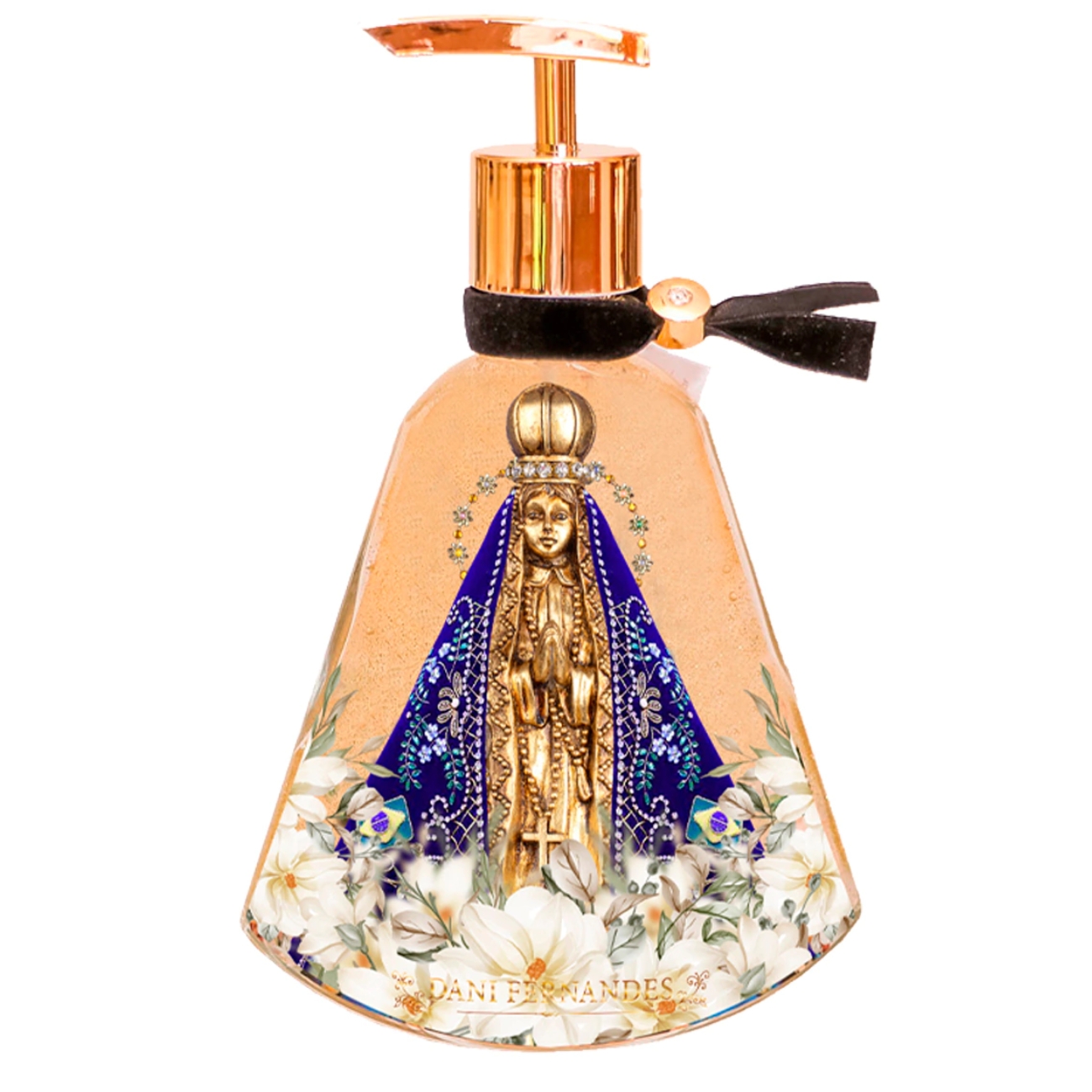 O Sabonete Líquido Glitter Flor de Figo é apresentado em um recipiente de vidro em forma de triângulo decorado com a imagem da Nossa Senhora Aparecida e um laço cor preta, possui 210 ml de Sabonete Líquido Glitter com partículas douradas. Este sabonete líquido vai além de um perfume irresistível e de sua espuma rica, é uma verdadeira peça de decoração, que vai proporcionar um toque de luxo e personalidade ao seu banheiro.