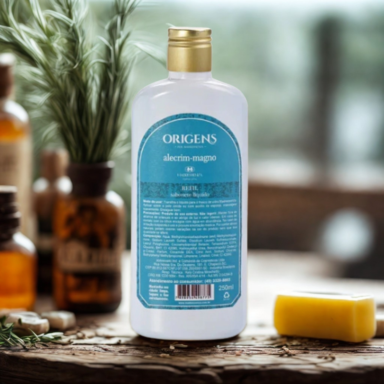 O Sabonete Líquido Alecrim Magno - Refil 250 ml você tem uma opção mais econômica para manter este perfume revigorante, digno de uma majestade.