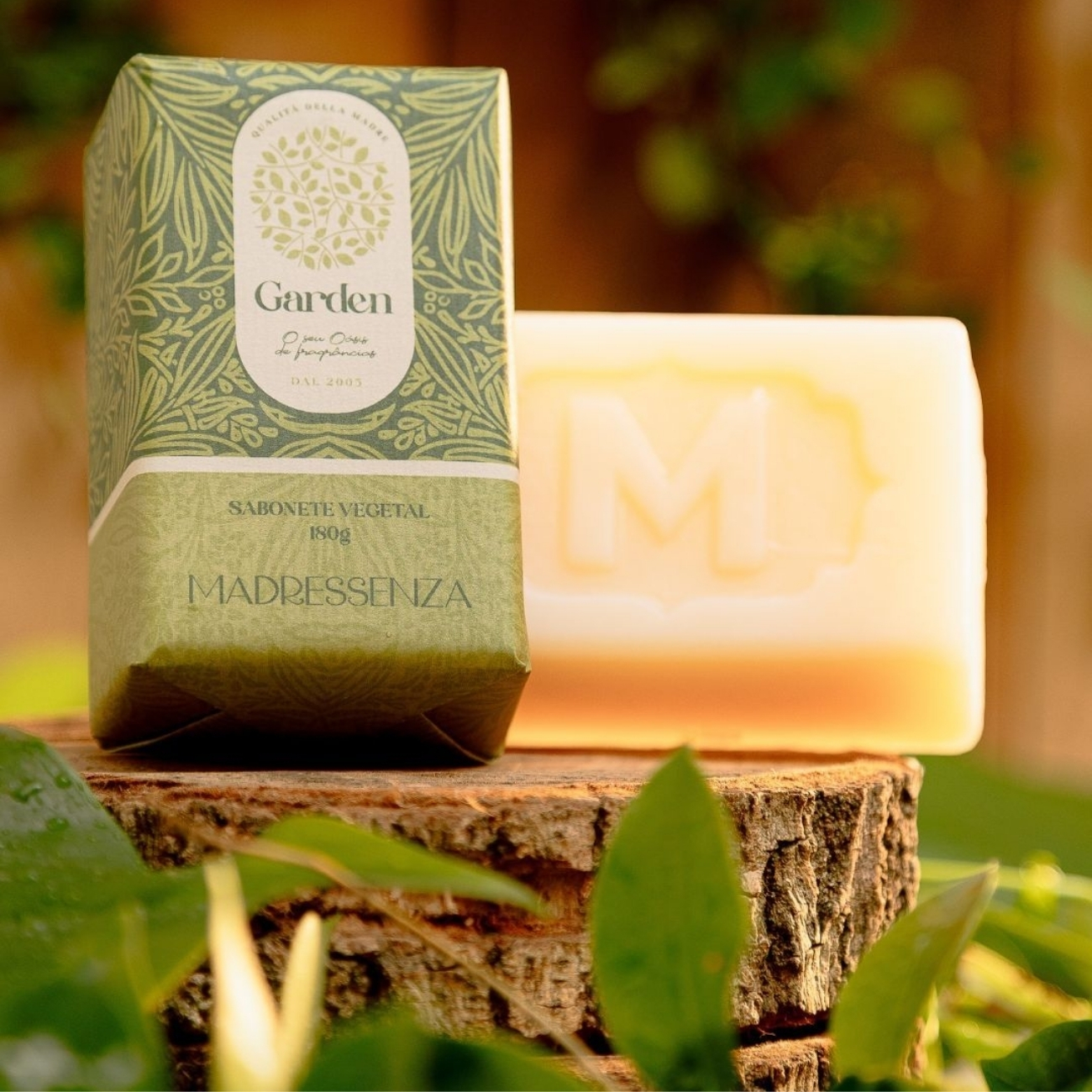 O Sabonete Vegetal Garden é produzido com glicerina, manteiga de karité e amido vegetal, proporcionando um toque aveludado e sedoso, com uma espuma rica e suave, cremosa e mais exuberante que os sabonetes tradicionais, além disso são produzidos de forma artesanal, cunhados e embalados manualmente.